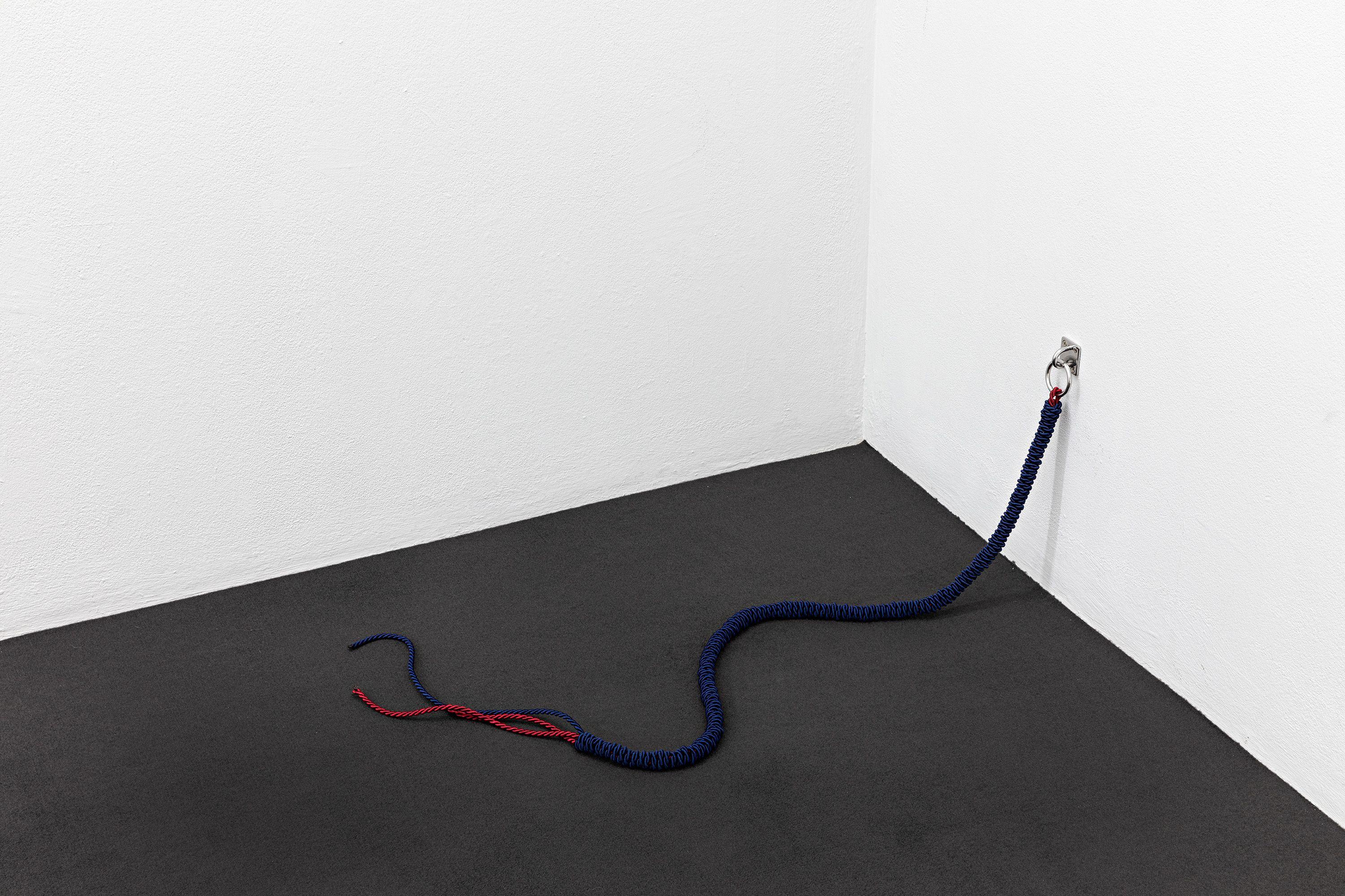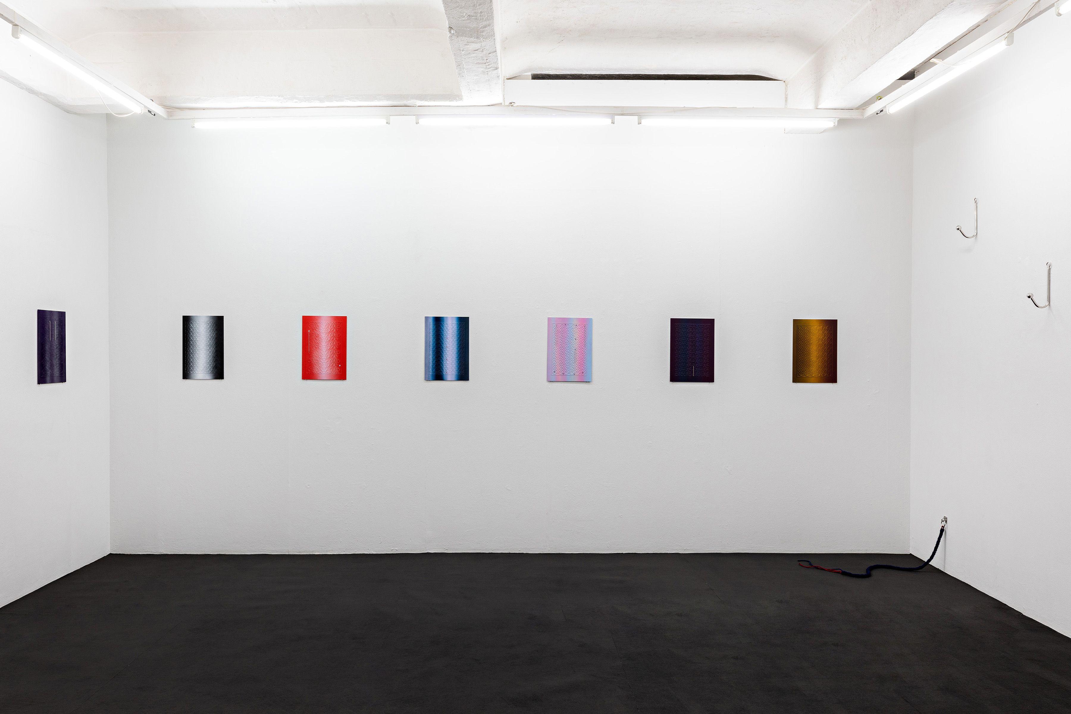 In A Room of One's Play, Franziska Opel develops a set in a systematic arrangement that irritates and agitates. As a recipient, I find myself a little lost in my memories and arrousals, which I would like to conceal in public. The pattern-like arrangement of elements and colours create a situation that is at once discreet and indiscreet, in which one's own discomfort is juxtaposed with one's own desire. It seems as if the everyday-seeming objects that Franziska Opel uses in her artistic work harbour a secret that only fully reveals itself to the initiated." Text by Jenny Schäfer